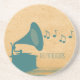 Quirky and unique Vintage Gramophone Sandstone Coaster in teal featuring a silhouette of an old-fashioned gramophone and a cascade of musical notes on a digital art rendered paper background. This chic sandstone coaster will protect your furniture with vintage flair and is perfect for any music lover. Easy to customise, simply personalise with the text of your choosing. Click on the "Customise It" button to find additional personalisation options.