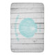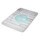Add an elegant touch to your bath decor with this Teal Vintage Scallop Shell Bath Mat. Bath mat design features a vintage scallop shell and custom text for you to personalise with your family name against a wooden background. Additional home decor items available with this design.