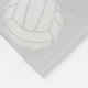 This fun volleyball themed fleece blanket features the text, "The volleyball court is my happy place" in teal in a cute, casual, handwritten style font - the background is light grey with a pattern of smaller white volleyballs - her name and monogram are customisable - by katz_d_zynes