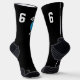 Make your own custom high-performance athletic crew socks for volleyball players and teams with teal team colours! Just click to personalise the template and type your own volleyball team name and volleyball player jersey number in the custom text boxes. You can also use the customisation tools to change the colour of the sock (currently set on black). Makes a great team gift for volleyball teams with teal team colours, especially high school and college volleyball teams!