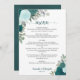 Teal Watercolor Floral Elegant Boho Wedding Menu