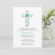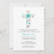 Teal Watercolor Flower Cross First Holy Communion Invitation