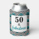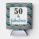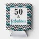 This simple, elegant, eye-catching design features the words "50 & fabulous" in popular black typography and teal script on a rounded white rectangle at the centre. The background features a bold, abstract geometric wave pattern in black, white, teal and aqua or turquoise. These can coolers work perfectly with other items in the matching black, white and teal 50 and Fabulous Birthday Party collection, or they can also be used on their own.