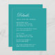 A very simple budget wedding details enclosure card, just white text on teal background. The title Details (that can be changed) is written in an elegant calligraphic script.