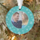 Teal Whimsical Snowflakes Holiday Photo Ornament