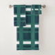 Teal White Blue Modern Plaid Check Bath Towel Set