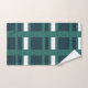 Teal White Blue Modern Plaid Check Bath Towel Set.