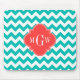 Teal White Chevron Coral Quatrefoil 3 Monogram Mouse Mat