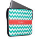 Teal White Chevron ZigZag Coral Name Monogram Laptop Sleeve