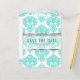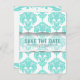 Teal & White Damask Chic Wedding Save the Date Postcard. Customise with any text.