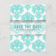 Teal & White Damask Chic Wedding Save the Date Announcement Postcard