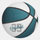 These team colours basketball stickers are suitable for girls or boys and feature the realistic image of a basketball that has alternating teal and white panels - personalise with player name in an "autograph" style font overlying the athlete's jersey number - by katz_d_zynes