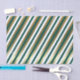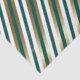 Holiday tissue paper with a diagonal stripe design of gold, white, and teal.