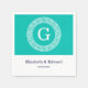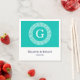 Teal White Greek Key Round Frame Initial Monogram Napkin