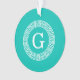 Teal White Greek Key Round Frame Initial Monogram Ornament