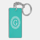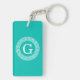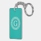 Teal White Greek Key Round Frame Initial Monogram Ring