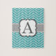 Teal White Monogram Letter A Chevron Jigsaw Puzzle