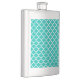 Teal White Moroccan Quatrefoil Trellis Pattern #2 Hip Flask