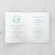 Teal green blue silver white hand drawn oval leaf botanical art wedding program. Simple leaf design circling your own monogram initials in silver, aqua teal and white. Other colours and matching wedding items available. © Original leaf drawing and design by Sarah Trett for www.mylittleedenweddings.com on zazzle.