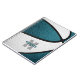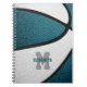 This sporty basketball themed spiral notebook features the image of a simple, abstractly oversized basketball with alternating teal and white recolored panels - athlete's name and monogram, varsity letter, or jersey number are customisable on the front cover - by katz_d_zynes