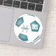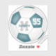 This team colours soccer sticker for girls or boys features the realistic image of a soccer ball that has teal and white panels - customise the player's name, monogram and jersey number - by katz_d_zynes