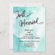 In this unique, artistic wedding reception invitation design I've used an elegant, modern calligraphy font to create graphic typography overlays reading "Just Married" and "and". Behind the text I've placed a white watercolor heart distressed in such an artistic way that a second watercolor graphic of a subtle teal wash peeks through. Fill in the template blanks with your own details to personalise the design. All layers were added separately and left unlocked so you can also click to customise the design as much as you wish. You may change fonts, the position of all text, size and rotation of the background layers... make this card your own!