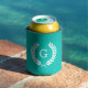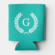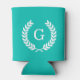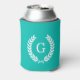 Teal White Wheat Laurel Wreath Initial Monogram Can Cooler