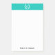 Teal White Wheat Laurel Wreath Initial Monogram Post-it Notes