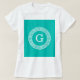 Teal Wht Greek Key Rnd Frame Initial Monogram T-Shirt