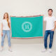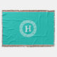 Teal Wht Greek Key Rnd Frame Initial Monogram Throw Blanket