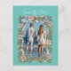 Bright and cheerful, like your planned wedding! Add your favourite photo of the celebrating couple. Whimsical hand drawn watercolor artwork of two bluebirds on blossom-and-butterfly filled branches, with a draped white ribbon for a touch of festivity! The light teal background sets off the coral, green and white artwork beautifully; the back of the card is teal with customisable message templates. The text is dark grey and ocean blue. All text templates are designed to make it easy for you to add your information.