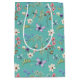 Light Teal Feminine Watercolor Wildflowers Pattern Medium Gift Bag.