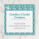 This illustration of white crocheted lace covers a background of dark colour for high contrast. Great classy look to tag your finished crochet products. Set your own business name and contact information, as well as care instructions for the crocheted item. Comes with twine for attaching to the item.