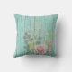 Teal Wood Effect Pink Roses Floral Bouquet Cushion