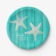 Teal Wood & Starfish Beach Elegant Tropical Chic Paper Plate