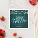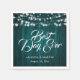 Rustic teal wedding paper napkins featuring a rustic wood adorned with string lights.