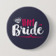 Team bride button. Perfect for bridal shower and bachelorette party accessories before the wedding. Navy blue, white and pink with diamond and small hearts. Background colour can be customised to your desired colour theme. This pin is for the bridesmaid, maid of honour, bride's families and friends.