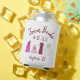 Can cooler design features an original illustration of a row of bridal party gowns.