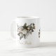 Personalised wedding bridesmaid mug with your text and bridesmaid's / maid of honour name featuring beautiful ivory white peonies greenery bouquets with winter seasonal foliage, branches, and leaves.. +++++++ Perfect as bridal shower custom favours.