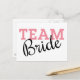 Let everyone know who's team you're on with this Team Bride pink script postcard. Perfect for bachelorette parties and other wedding events.