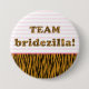 NewParkLane - Fun Bridesmaid's Button, with funny quote: 'Team Bridezilla', in a modern typography with a tiger print pattern, against a blush pink striped background with with a tigerprint pattern trim.
