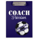 Personalise this clipboard for your favourite coach and team. Sports team personalised gear to customise with the name of the coach and team name. Coaches use clipboards to keep notes and plays organised during games and practice. Help a soccer coach stay organised with a personalised, customisable clipboard.
