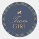 This Team Girl gender reveal voting sticker features a timeless navy plaid design with gold lettering, perfect for a classic and preppy gender reveal celebration. Guests can use these stickers to vote during the party and join in the fun.