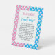 Build suspense and excitement at your gender reveal party by getting your guests involved! Set out this charming, whimsical pedestal sign behind a pile of pink and blue buttons and let the sense of competition begin.