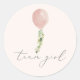 Team Girl Pink Balloon Calligraphy Gender Reveal Classic Round Sticker