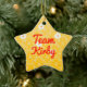 A quality product. Very nicely printed which wraps around the edge with a plain back. Not at all to heavy to fall off that tree branch. The printing seems crisp and robust enough to last for many a Christmas.
