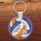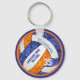 This blue, orange and white personalised volleyball keychain with team name features the realistic image of a volleyball that has a floral kaleidoscopic pattern blended with its blue and orange panels - her name and team name are customisable, as is her jersey number - by katz_d_zynes | search ALL katzdzynes' blue & orange volleyball team colours gifts >>>> https://www.zazzle.com/store/katz_d_zynes/products?cg=196050574805398359