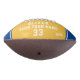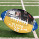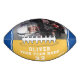 Custom Team Name Player Number Yellow Blue Stripe Photo Football. Modern sporty custom football with your name, team name your number and year on one panel and a custom photo on the second panel - add your text and photo. Sporty design with blue and yellow stripes. You can change any text on the football or erase it. A perfect gift for a football player, teammate, coach. Great keepsake to remember your favourite sport.