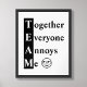 If you are over group projects and office small talk, bring a dose of sarcastic truth to your workplace with this bold black and white typography poster. Featuring the snarky redefinition of “TEAM” as “Together Everyone Annoys Me”, this minimalist print is great for cubicles, home offices or shared workspaces, where a little humour goes a long way. A fun conversation starter (or warning sign), this poster is available in both print and instant download.