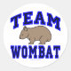 Team Wombat: You can count on the wombats to get the job done. No matter what. Team Wombat crest with blue and black lettering.